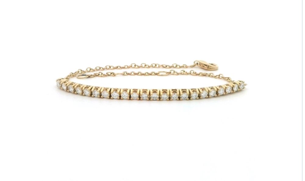 Diamantarmbånd i 14 kt. Guld med 22 brillianter og en samlet vægt på 0.67 ct. Dette elegante armbånd er stemplet FHP 585. Hvilket garanterer kvaliteten. Vi handler kun med originale konfliktfri diamanter., Så du kan være sikker på etisk ansvarlighed.