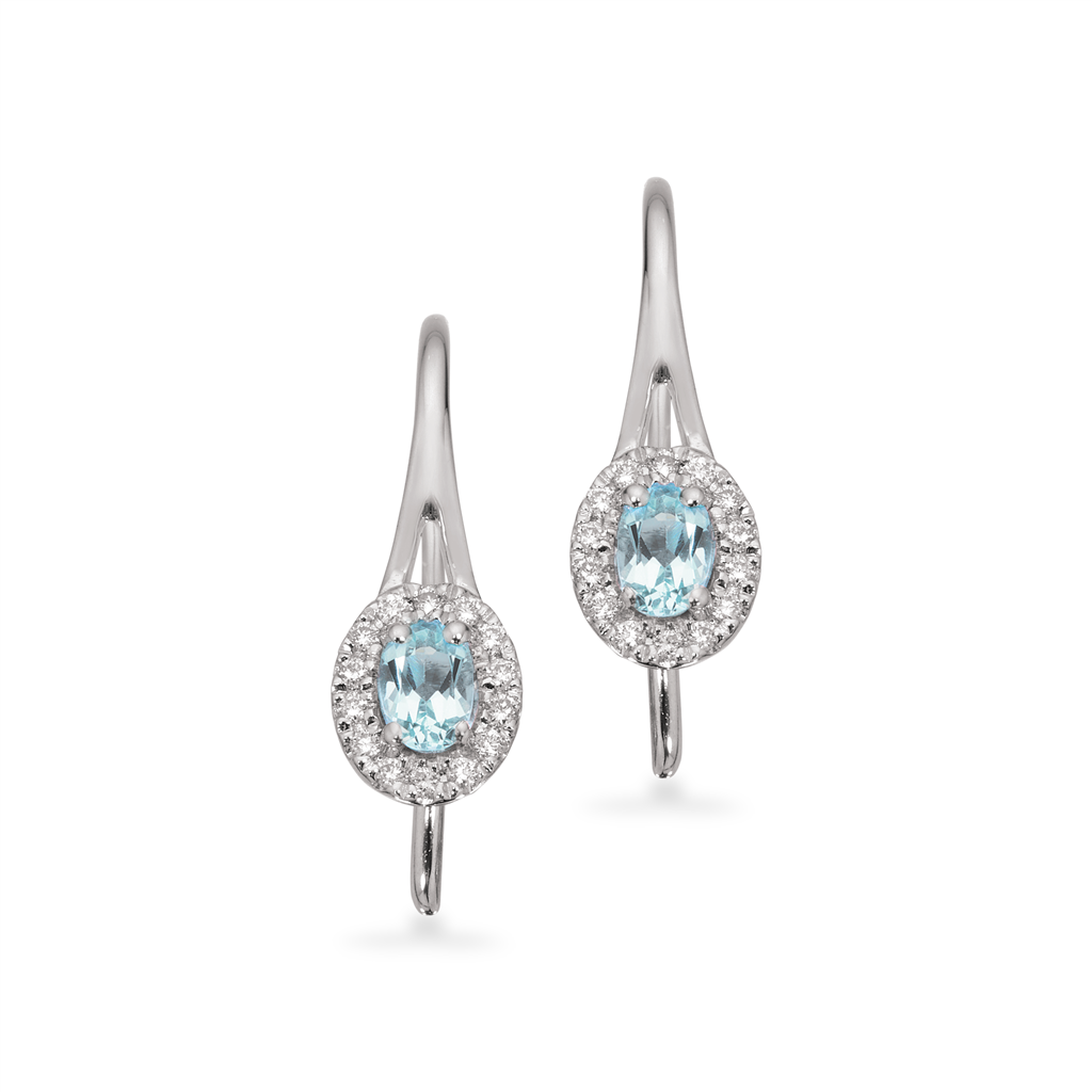 Øreringene er ideelle til både hverdag og festlige anledninger. Den fine kombination af hvidt guld og aquamarin skaber et sofistikeret look. Der passer til enhver stil. Giv dig selv eller også en elsket en gave. Der vil blive værdsat i flere år fremover.