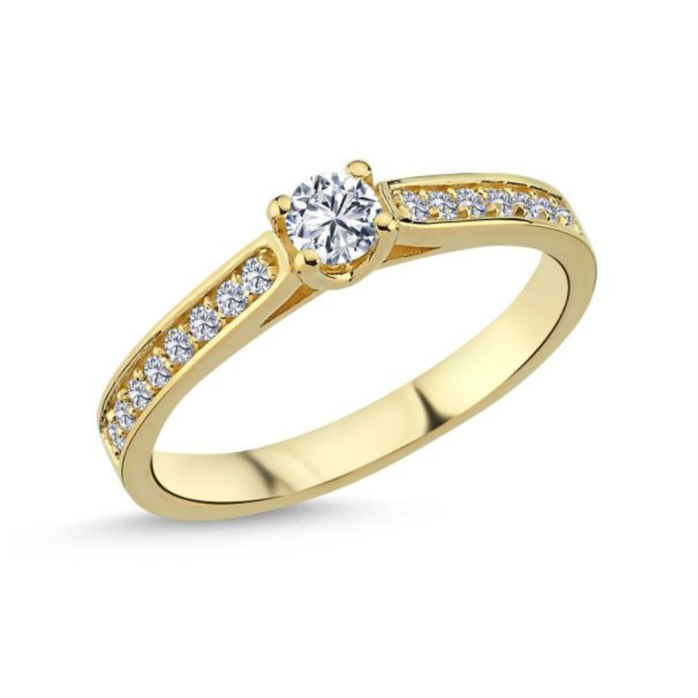 – Flankeret af 16 mindre diamanter for ekstra glans